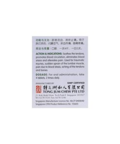 Helps to soothes the tendons, promotes blood circulation, eliminates blood stasis and alleviates pain. Used for traumatic injuries, sudden sprain of the lumbar muscle, pain due to blood stasis, aching of the tendons and bones.