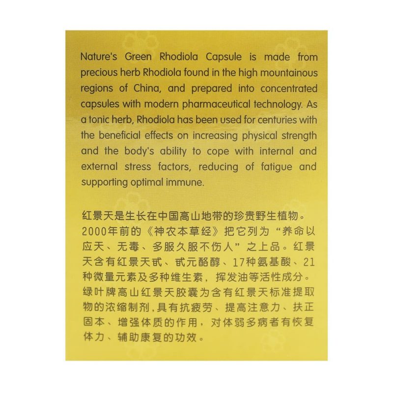红景天胶囊(Nature’s Green Rhodiola Capsules) 采用高山野生红景天精华萃取,